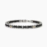 Bracciale in acciaio 316L lucido e satinato con elementi in ceramica nera 7.5×3 mm e viti in PVD giallo Ø 2.5 mm, lunghezza regolabile da 19 a 21 cm