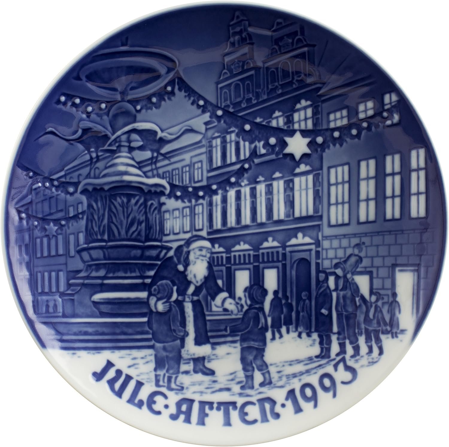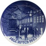 Il piatto di Natale del 1993 è il 99° della serie di famosi piatti Bing&Grondahl ed è intitolato “Father Christmas in Copenhagen”. Il motivo ornamentale è in rilievo e il piatto è decorato a mano nelle classiche sfumature blu cobalto applicate sottosmalto. Il piatto è stato prodotto in quantità limitata solo ed esclusivamente nell’anno riportato sul piatto stesso e la produzione è terminata a fine anno con la distruzione della forma originale che ne ha reso così impossibile la riproduzione. A garanzia di autenticità il piatto reca il marchio della Bing&Grondahl con le tre torri, ispirato allo stemma della città di Copenhagen, e le iniziali del pittore. Il piatto misura 18 cm. di diametro e sul retro presenta i due fori praticati dalla Bing&Grondahl in fase di produzione per poterlo appendere.