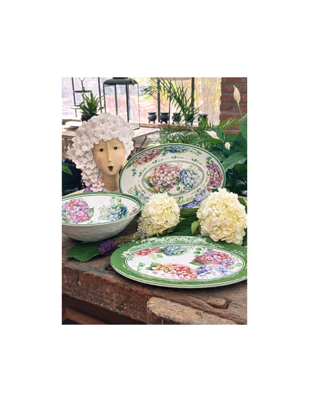 Una collezione ispirata alla natura rigogliosa, che unita al verde intenso tipico dei giardini più floridi regala ai tuoi spazi una calda ed elegante atmosfera. Raffinate ortensie e delicati ornamenti floreali adornano porcellana, ceramica, resina e melamina creando una linea graziosa perfetta per decorare la tua tavola. Abbina gli articoli della collezione Flora con un accogliente arredamento in legno o mescolali con un moderno più strong: ogni oggetto pensato per esaltare i living spaces più disparati, senza mai perdere la sua tenue raffinatezza.