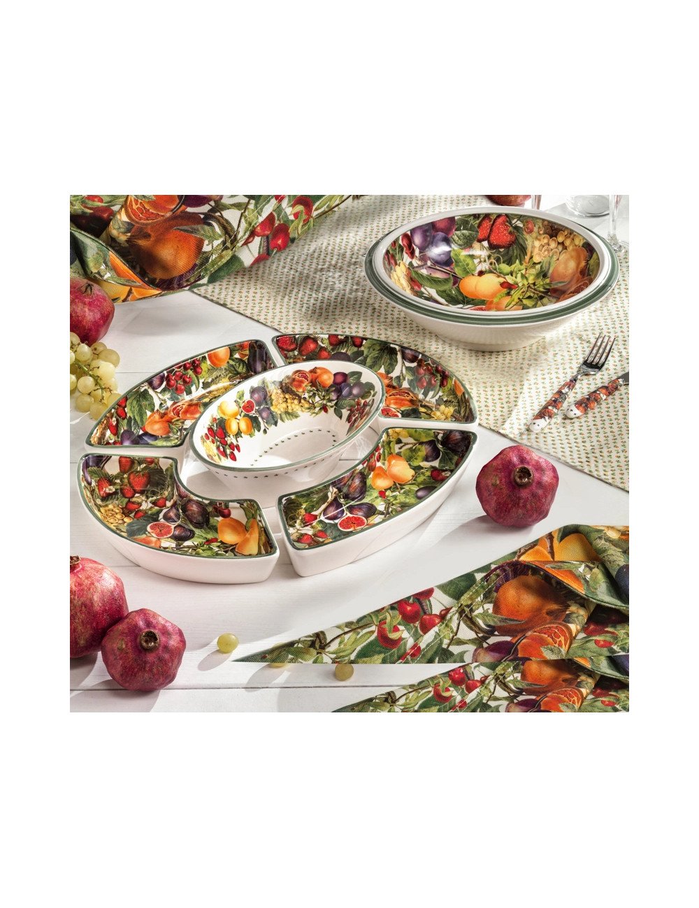 Caldi colori e luminose tonalità: la collezione Le Primizie firmata Brandani un trionfo di rigogliosa natura direttamente a casa tua. Accessori eleganti e funzionali pensati per adornare al meglio il tuo living space, finemente decorati con ornamenti di frutta. Per un momento di relax da trascorrere tra amici, la cena fredda Le Primizie l’oggetto perfetto per riunirci attorno alla tavola, tra un aperitivo ed un antipasto sfizioso: composta da una capiente ciotola centrale abbracciata da altre quattro ciotole laterali, la cena fredda raccoglierà il tuo finger food con stile e signorilità esaltando ogni contesto grazie ai suoi brillanti e rigogliosi ecori di frutta. Scopri l’intera collezione Le Primizie!