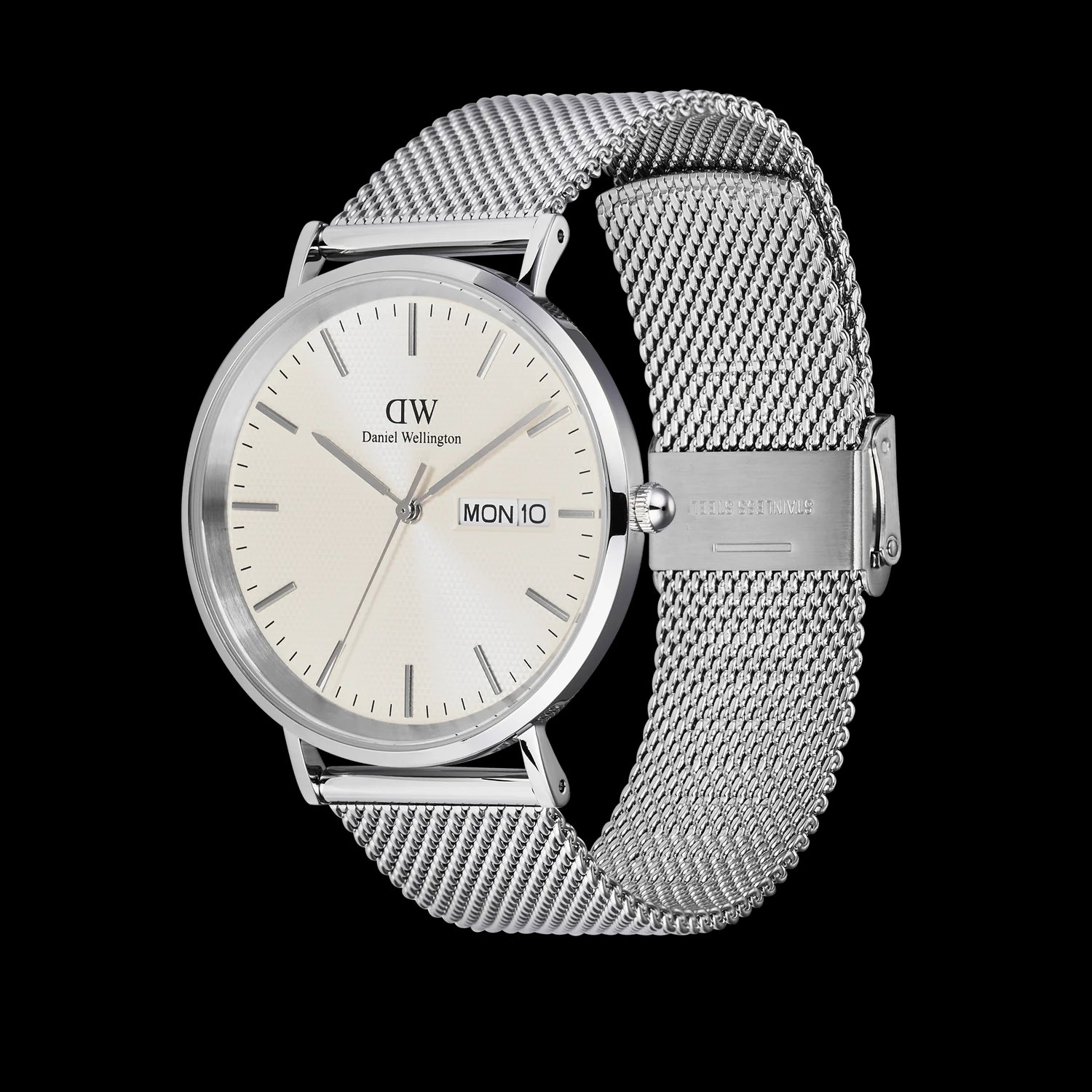 Il nostro orologio Classic, noto per l’impeccabile unione tra la tradizione di una consolidata maestria artigiana e una moderna funzionalità, si è meritato una rivisitazione stilistica. Questa versione presenta un quadrante che mostra la data ed i giorni della settimana. L’orologio condivide il design della cassa con il precedente modello “Multi-eye” che presenta una smussatura circolare spazzolata tra vetro e quadrante, mentre il modello Classic Day Display vanta un raffinato motivo triangolare semitrasparente sul quadrante, creando così un effetto scintillante molto discreto ed elegante.