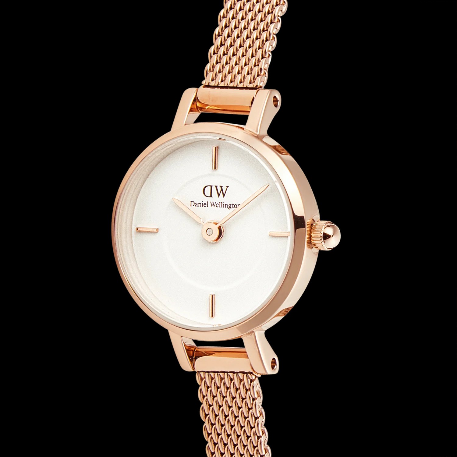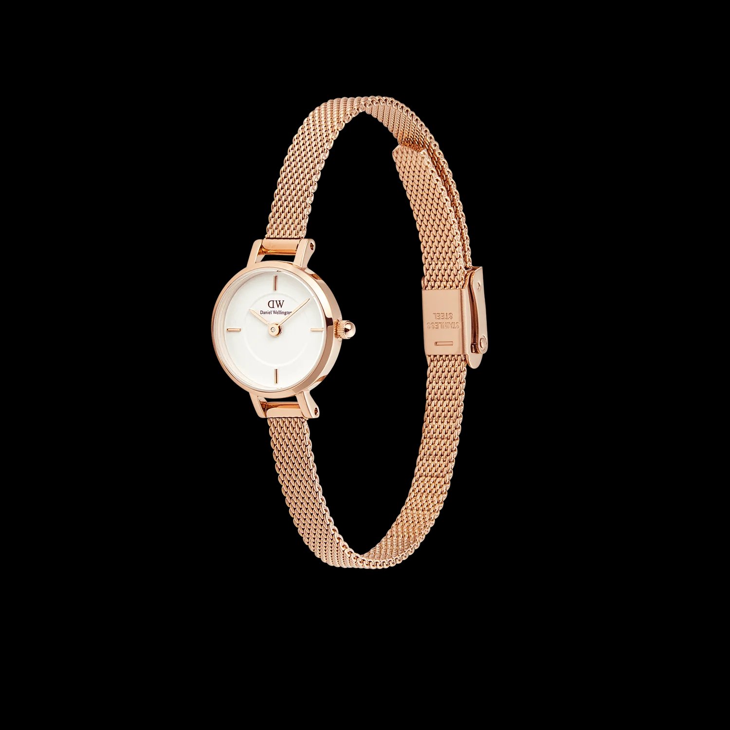 Ti presentiamo il Petite Mini Melrose: un’estensione della nostra collezione di orologi Petite, ma in un’irresistibile versione tanto mini quanto chic. Il quadrante bianco dal motivo radiale si ispira a elementi stilistici dei nostri orologi Quadro Mini, sfoggiando un anello con fascia sovrapposta che rende l’insieme ancora più elegante. Il cinturino in maglia color oro rosa è intercambiabile, per darti modo di giocare a piacimento con lo stile che si abbina al tuo mood.