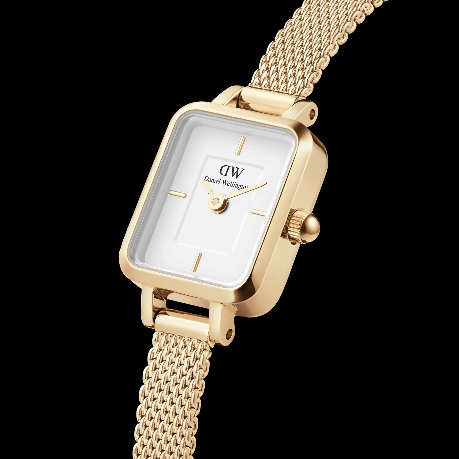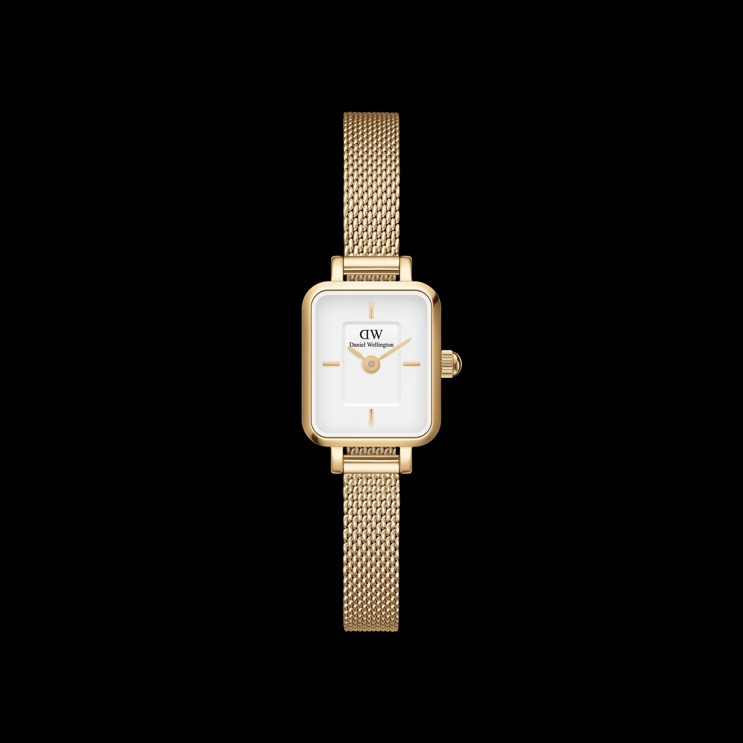 I raffinati angoli di Quadro sono stati ulteriormente ridotti per trasformarlo nel nostro orologio più piccolo di sempre. Questa versione di Quadro Mini vanta la nostra colorazione più tradizionale, impreziosita da un cinturino in maglia color oro.