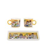 Porta sulla tua tavola un tocco di calore e allegria con il Set 2 Mini Mug + Vassoio Paese Mio Giallo. Questo set include due mini mug da 90 ml e un elegante vassoio decorato con scene ispirate ai borghi italiani. Ideale per servire caffè, questo set è perfetto per aggiungere un dettaglio accogliente alla tua cucina o come idea regalo.