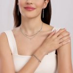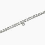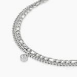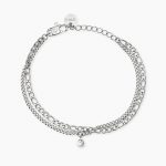 Bracciale regolabile con catene figaro e groumette diamantata in acciaio con ciondolo con cristallo.