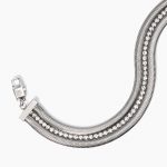 Bracciale regolabile con doppia catena snake e tennis di cristalli bianchi.