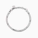 Bracciale regolabile in acciaio con catena Herringbone e cristalli.
