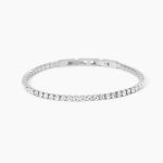Bracciale regolabile in acciaio con tennis di zirconi bianchi.