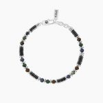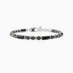 Bracciale uomo regolabile in acciaio con giada, occhio di tigre, sodalite blu ed ematite faccettata.