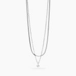 Girocollo regolabile in acciaio con catene forzatina diamantata e herringbone, e punto luce in cristallo.