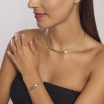 Girocollo regolabile in acciaio dorato con cristalli bianchi.