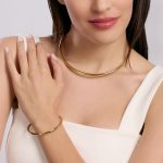 Girocollo in acciaio dorato con chiusura magnetizzata.