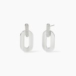 Orecchini in acciaio con cristalli e pendenti allungati.