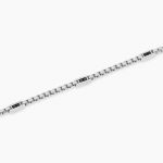 Bracciale regolabile in argento rodiato sabbiato con catena veneta ed elementi in zirconi neri taglio quadrato.
