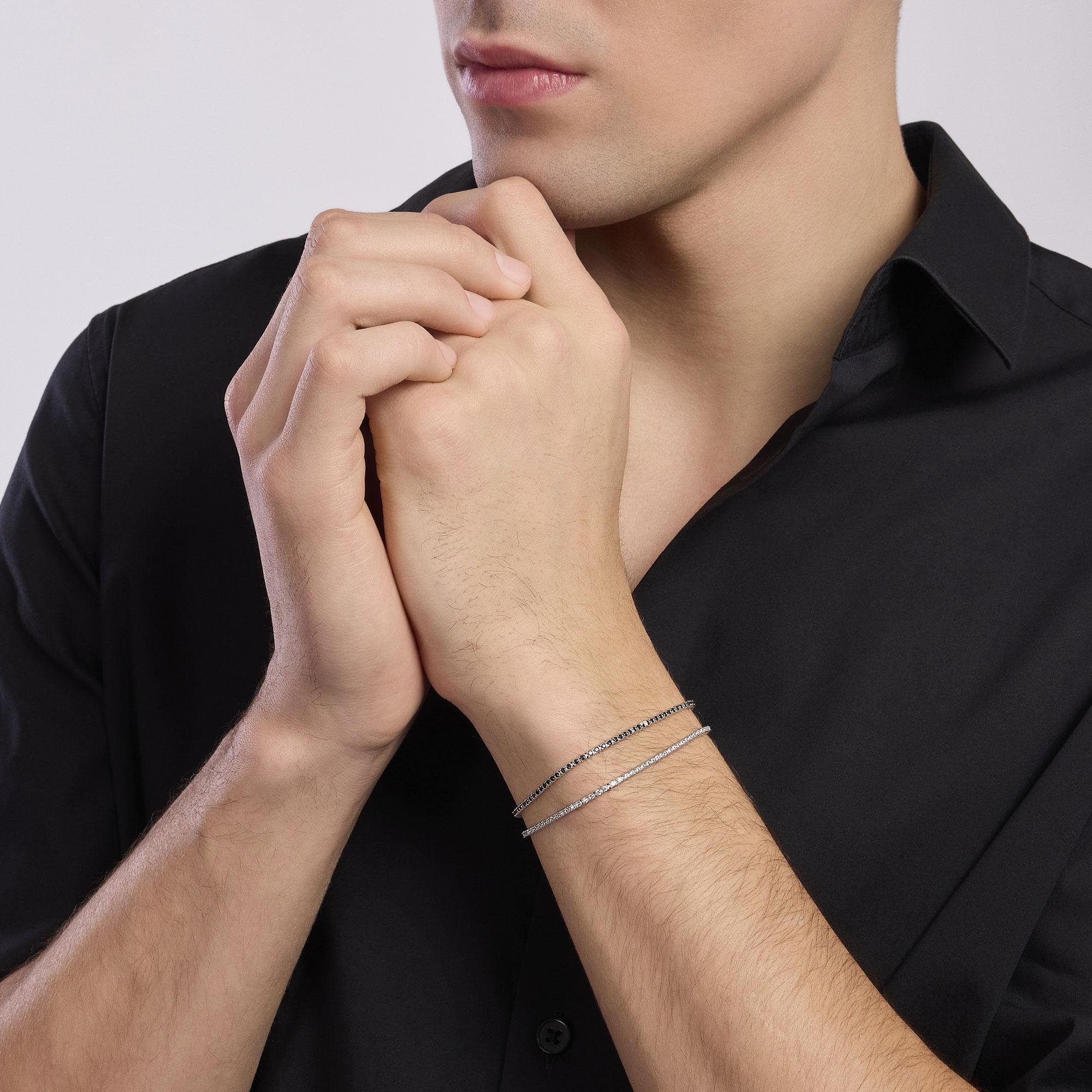 Bracciale regolabile tennis da uomo in argento rodiato con zirconi neri.