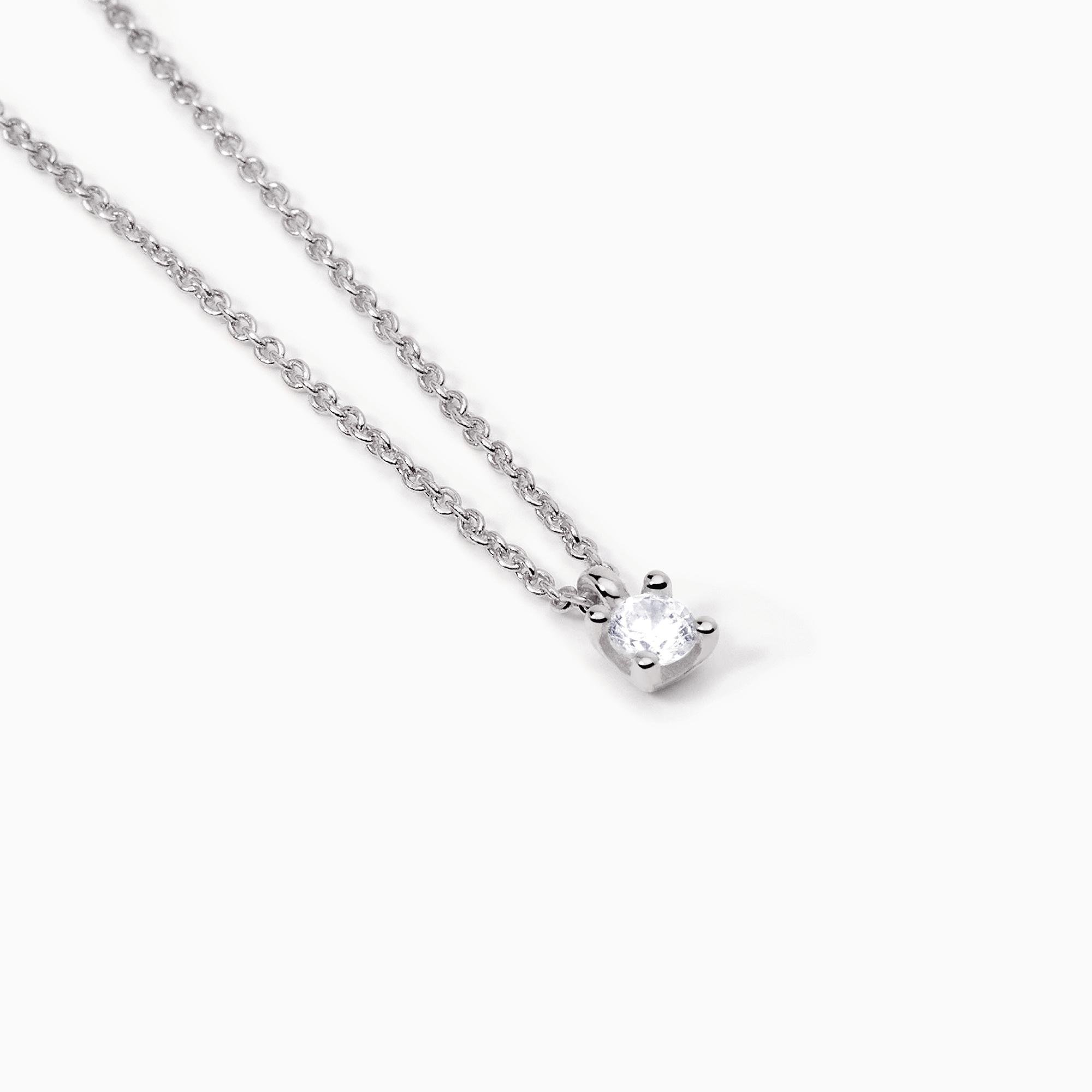 Girocollo da donna in argento rodiato con catena forzatina e pendente con zircone bianco.