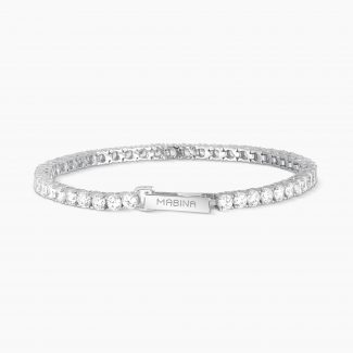 Bracciale con catena veneta in argento rodiato e inserti con zirconi.