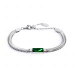 Bracciale con catena snake con al centro cristallo nanometer verde 6*12 mm a taglio baguette. Lunghezza totale 19 cm regolabile tramite cursore da 19 cm a 15 cm. Chiusura con moschettone. Marlù logo tag ovale presente all’ estremità.