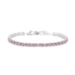 Bracciale con catena tennis con cubic zirconia 4 mm, con al centro un cubic zirconia taglio baguette. Lunghezza totale 19 cm regolabile tramite cursore da 19 cm a 15 cm. Chiusura con moschettone. Marlù logo tag presente all’ estremità.