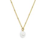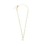 Collana in acciaio con catena grumetta con sfere, al centro una perla pendente irregolare bianca rivestita. Tag ovale con il logo Marlù ad una estremità vicino al moschettone. All’altra estremità una perla ovale bianca rivestita. Lunghezza totale 44 cm regolabile tramite cursore da 44 a 34 cm. Disponibile in acciaio e acciaio con pvd oro.