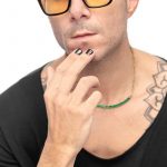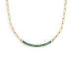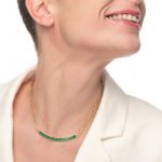 Collana con catena a maglia larga con centrale rigido composto da catena tennis con baguette cristallo nanometer verde. Lunghezza totale 43 cm. Marlù logo tag ovale presente all’ estremità.