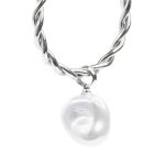 Mono orecchino in acciaio a cerchio ritorto con diametro 2,7 cm, con perla irregolare bianca rivestita pendente. Marlù logo laserato sulla chiusura. Lunghezza totale 4,2 cm. Disponibile in acciaio e acciaio con pvd oro.