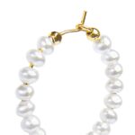 Mono orecchino a cerchio in acciaio con diametro 2,8 cm con perle bianche irregolari rivestite, all’estremità due sferette di acciaio, su una delle quali è presente il logo Marlù. Disponibile in acciaio e acciaio con pvd oro.