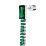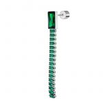 Mono orecchino con una catena tennis con baguette cristalli nanometer verdi al cui vertice si trova un cristallo verde con taglio a baguette. Lunghezza totale 6,2 cm.